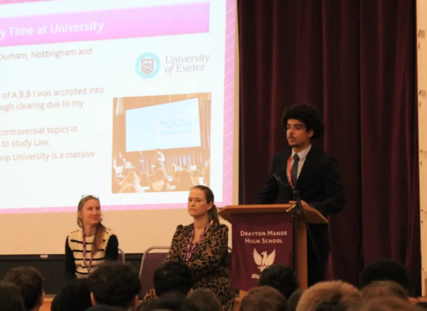 On Friday 31 January 2025, Year 11 students at Drayton Manor High School were treated to an inspiring visit from alumnus Pedro da Conceição. Having navigated his own academic journey from GCSEs to studying Law at the University of Exeter, a prestigious Russel Group University. Pedro shared invaluable insights on how to succeed, not just in exams, but in life beyond school.